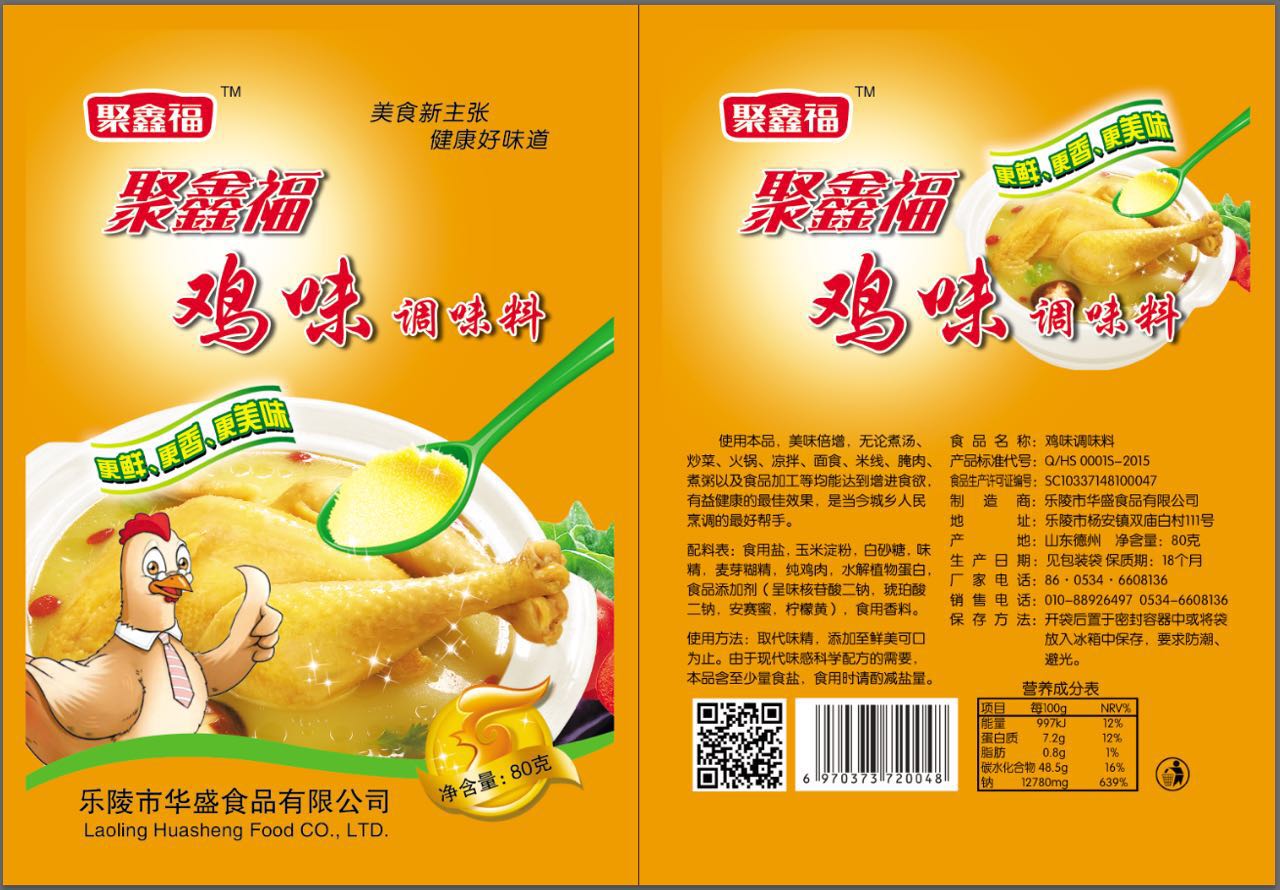 聚鑫福-雞味調(diào)味料80g包裝更方便使用,味道鮮美,在烹調(diào)菜肴時適量使用,能促進(jìn)食欲.雞精的鮮味主要來自谷氨酸鈉,符氨酸鈉是谷氨酸的鈉鹽,它有強烈的肉類鮮味,易溶于水。雞精進(jìn)入胃腸后,所含的谷氨酸鈉能很快分解出谷氨酸。